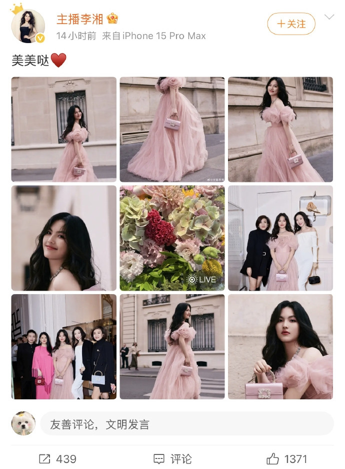 巴黎时装周的流光溢彩尚未散去,李湘在个人社交平台分享的一组女儿王诗龄的九宫格美照,却让舆论焦点从T台转向了一段不足三秒的背景音。位居照片矩阵C位的,是一张鲜花簇拥的Live动图——正当网友沉浸于这份动态的甜美时,一句清晰的“我不喜欢周也”随画面同步播放,未经任何技术处理的原声被直接公开。